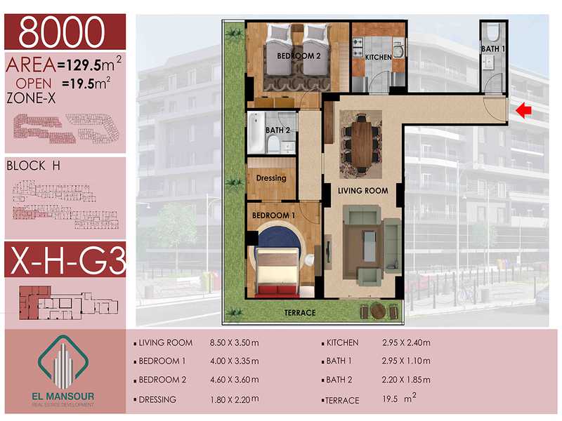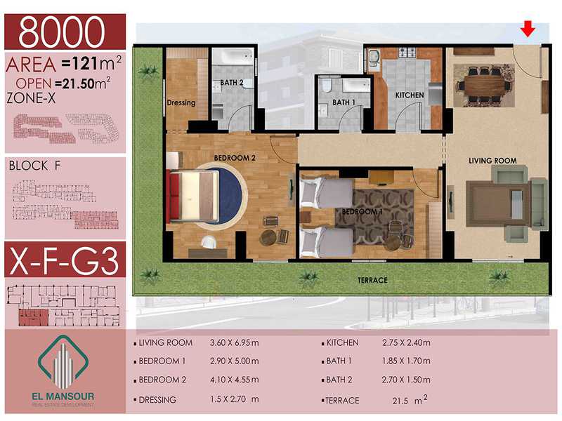 - شقق بحديقة مساحة تبدأ من 121 – 130 م² وأسعار 713,900 – 754,000 جنيه