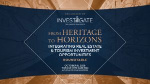 Invest-Gate Launch Its 26th Roundtable Entitled “From Heritage to Horizons: Integrating Real Estate & Tourism Investment Opportunities”, the event will be held on Wednesday, October 8, 2025, at 9:00 AM, at the Nile Ritz-Carlton Hotel, ‘Alf Leila We Leila Ballroom.